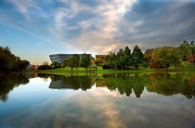 學校裏有一個明媚的湖,我和一位來自清華大學的張姓同學坐在湖畔,一陣陣野鴨飛過,也有幾隻就在湖裡歇腳悠閒的游著。